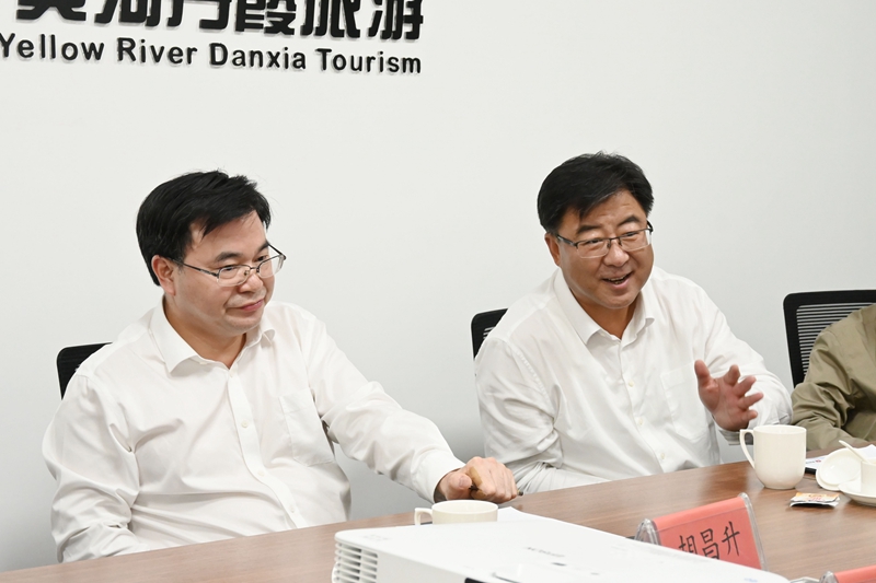 胡昌升書記一行現(xiàn)場聽取了甘肅丹霞旅游公司董事長衷梅英關(guān)于黃河炳靈丹霞文旅項目確立、項目推進和項目計劃的情況匯報,并觀看了規(guī)劃展板、設(shè)計視頻。