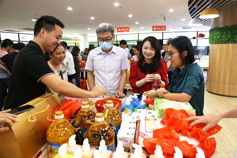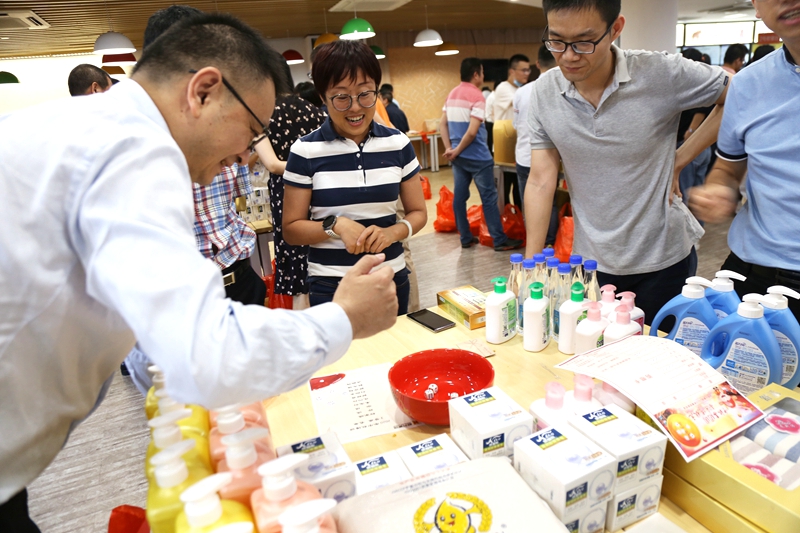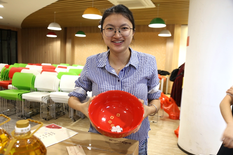 博到狀元的同事,不忘在攝影師的鏡頭下,記錄著“紅4”骰子點(diǎn)數(shù)和喜悅的笑顏?;顒?dòng)最后,桌上的各項(xiàng)禮品被同事們“刮分”干凈,大家提著紅色購物袋滿載而歸。即使沉甸甸,這也是值得開心和興奮的甜蜜小負(fù)擔(dān)!