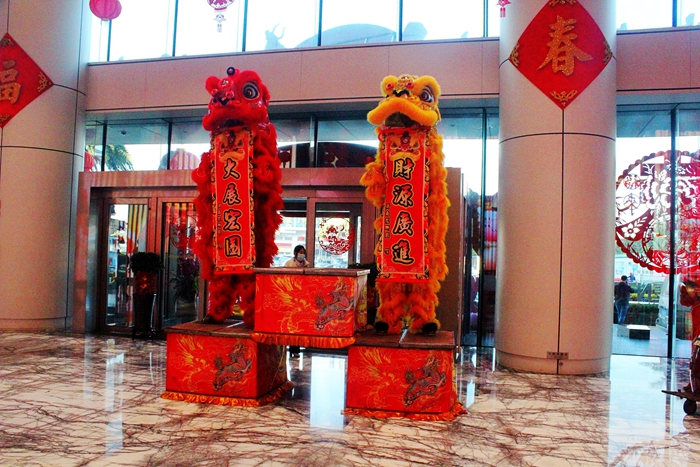 醒獅被認為是象征吉祥如意、求吉納福的吉祥瑞物。鑼鼓喧天中,金獅閃亮登場,精神抖擻地搖擺走來,眼睛一眨一眨,動作既傳神又精神!金獅點睛儀式在財富中心一樓大堂進行,點睛后的金獅猶如被喚醒,時而跳躍,時而登高,時而抖毛……