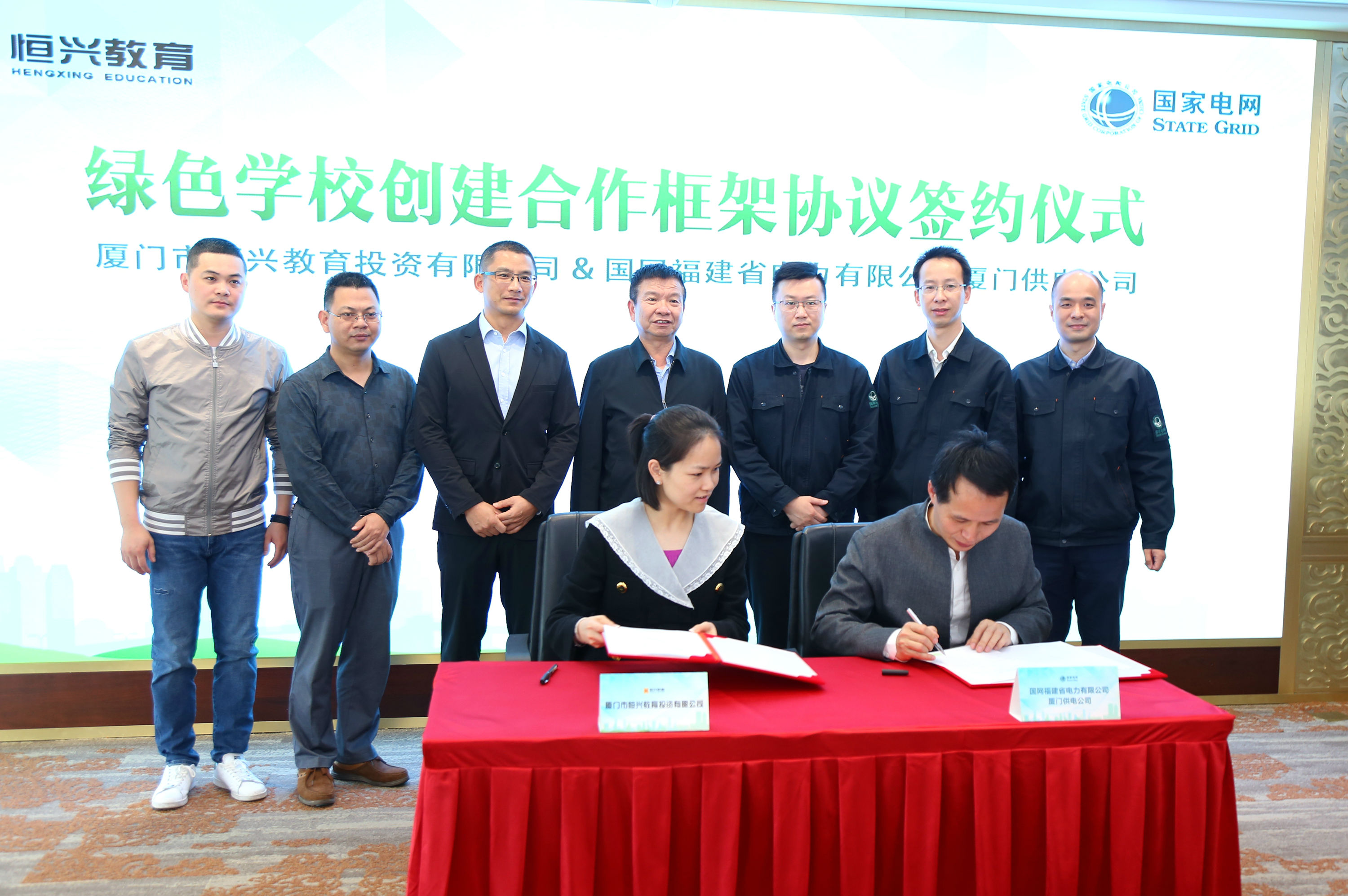 4月9日上午,恒興集團(tuán)旗下廈門市恒興教育投資有限公司與國網(wǎng)福建省電力有限公司廈門供電公司在財(cái)富中心43樓多功能廳舉行簽約儀式,合作創(chuàng)建綠色學(xué)校。