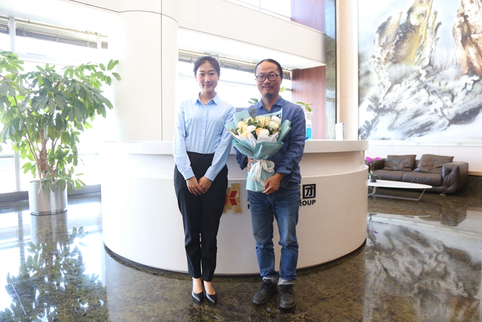 當(dāng)天下午,集團前臺工作人員為楊函憬送上鮮花,迎接他的到來。會議室也布置了許多花磚元素的美食和冰箱貼,供到會同事品嘗和領(lǐng)取。
