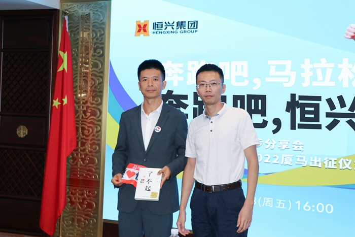 當(dāng)天,集團(tuán)公司總裁辦主任吳勇慧在發(fā)言中祝賀葉仁平再次中簽,期待他將恒興人追逐不凡的身姿,再次帶進(jìn)廈馬賽場(chǎng),并預(yù)祝他突破個(gè)人歷史成績(jī)記錄?,F(xiàn)場(chǎng),吳主任為參賽職工發(fā)放了賽事報(bào)名費(fèi)補(bǔ)貼,并贈(zèng)送勵(lì)志書籍、馮唐的新書《了不起》。?