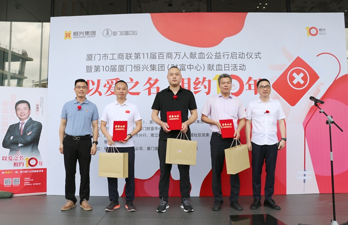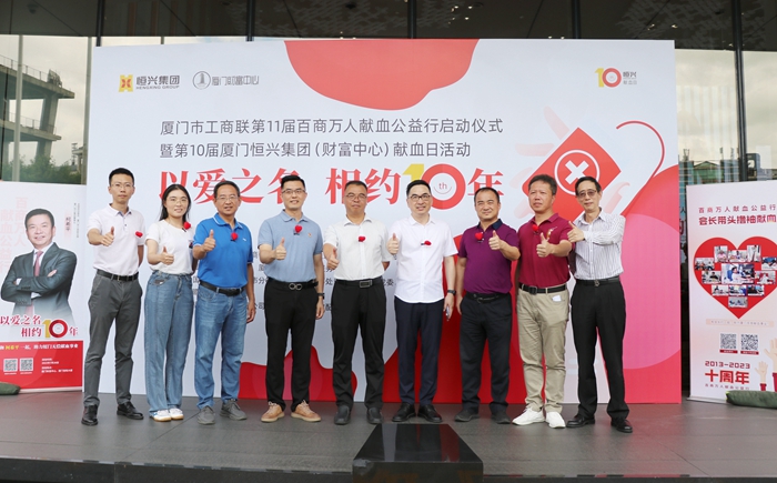 晨間風(fēng)起,如約奔赴!7月26日,廈門市工商聯(lián)第11屆百商萬人獻(xiàn)血公益行啟動儀式暨第10屆恒興獻(xiàn)血日活動順利舉辦?;顒佑蓮B門市工商聯(lián)、廈門市中心血站、廈門恒興集團(tuán)主辦,本次主題為“以愛之名,相約10年”。在超強臺風(fēng)杜蘇芮或?qū)⒃斐捎绊懙那跋?,截至?dāng)日15:00,廈門財富中心會場和寶拓大廈會場共有258人報名參與,181人成功獻(xiàn)血,當(dāng)日獻(xiàn)血量47500毫升。至此,恒興獻(xiàn)血日10年累計總獻(xiàn)血量達(dá)487140毫升。