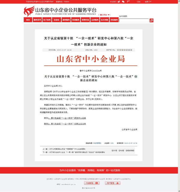 近日,《山東省中小企業(yè)局文件(魯中小企局字[2015]64號(hào))》公布了省級(jí)第十批 “一企一技術(shù)”研發(fā)中心和第八批“一企一技術(shù)”創(chuàng)新企業(yè)名單,泰安麥豐新材料科技有限公司通過市局推薦、省局初審和專家委員會(huì)嚴(yán)格評(píng)審,成功獲評(píng)省級(jí)“一企一技術(shù)”研發(fā)中心。
